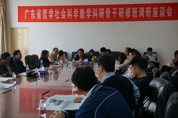 调研座谈会由省委宣传部胥志伟科长主持。王卡司团长首先对学员们前来湛江考察表示欢迎,并介绍了湛江的情况。陈恕平部长从“文化力”、“生命力”“教育力”“影响力”等四个方面介绍了学校办学情况,并与学员们分享了我校思政教育工作的所思、所感和所为,虚心向教学科研骨干研修班学员们请教“哲学与社会科学如何形成合力”、“学生素质教育与学校项目建设如何协调”、“学校各学科力量如何整合”等问题。陈东英副处长从五方面对我校科研情况作了介绍:强化科研导向,完善科研管理条例,营造良好氛围;以学科建设为龙头,强势推进科研工作的跨越式发展;强化项目申报工作,拓宽科学研究渠道;重视成果管理与专利申报,大力推进成果转化工作;注重服务地方,强化协同创新。张学松教授从基地建设情况、研究思路与策略、研究成果及存在不足等方面介绍了雷州文化的研究状况。