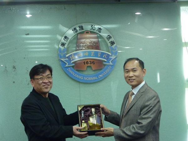 会后,双方互赠纪念品,并合影留念,交流会前邓逢光处长还陪同金佚洙院长一行参观了校园,让客人充分感受我校优美的自然景观与古朴的人文气息。