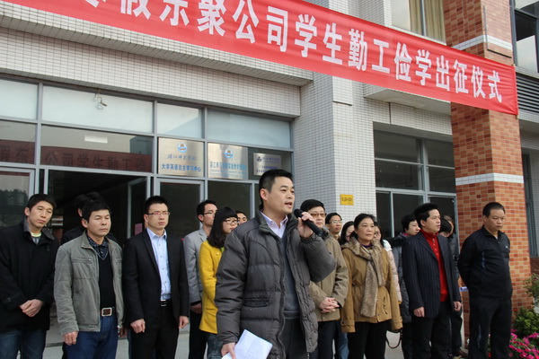 随后,学生处李粤处长致辞,他向同学们致以亲切问候和良好祝愿。李粤处长指出,今年学校和东聚公司顺利签订校企合作合同,在共建综合性实践基地、订单式人才培养、学生勤工俭学、毕业生就业、设立助学基金、公司员工培训进修等方面开展合作。这是勤工俭学活动的成功实施,是学生社会实践活动和勤工助学工作校外拓展的重大突破。李处长亲切地嘱咐同学们:(1)要守住纪律防线,保证活动顺利开展;(2)要端正思想认识、积极投身实践活动;(3)要尽早进入角色,在岗位上创新学习。