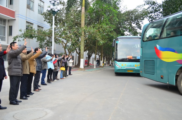 清晨的校园寒气逼人,但却阻挡不了同学们高涨的出征士气。上午六点三十分,出征的同学拉着行李陆续在综合楼前集中,在校自强社干部的组织下有条不紊地把行李搬上车,整装待发。