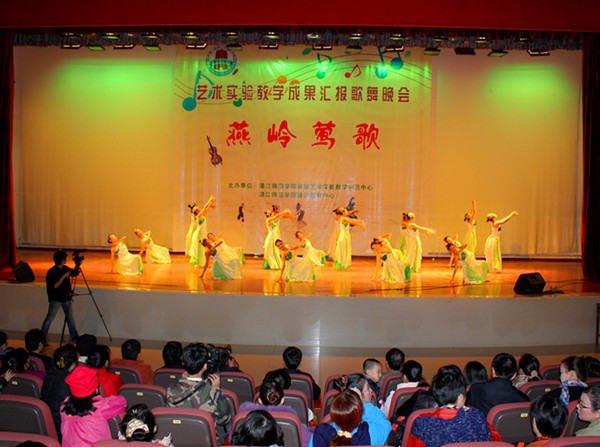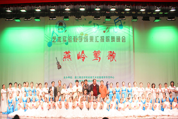 湛师新闻网12月29日讯 为集中展示我校艺术实验教学成果, 锻炼和提高学生的艺术表演力,12月23日晚,由广东省艺术实验教学示范中心和通识教育中心联合举办的“燕岭莺歌”歌舞晚会在音乐厅隆重举行。出席晚会的嘉宾有邵乐喜副院长、教务处程可拉处长、工会何征强常务副主席、法规处蒋金晖处长、科技处金义富处长、音乐学院孙建华院长以及通识教育中心林春主任等,湛江广播电视大学李连红书记也应邀出席了晚会。