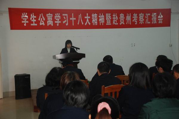 最后,学生处陈永国副处长与参会人员分享了学习党的十八大精神的体会和心得。陈副处长主要从十八大报告四个层面上的重大意义(十年成就经验的科学总结、党的指导思想的与时俱进、中国特色社会主义的高度自信、全面建成小康社会的战略部署)、正确理解科学发展观确立为党和国家的指导思想的重要意义、积极践行“为办好人民满意的教育的努力”等三个方面为学生公寓全体员工解读了党的十八大精神,勉励全体公寓员工积极发挥服务育人的作用,在各自的岗位上尽心尽力为学生提供高质量的服务,提高学生入住公寓的幸福感和满意度,引导学生努力成才。