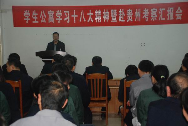 湛师新闻网12月29日讯 27日下午,学生处组织召开学生公寓学习党的十八大精神暨赴贵州考察汇报会,学生公寓中心陈奕鹏主任主持会议。学生处陈永国副处长参加了会议,并且与学生公寓全体员工分享学习党的十八大精神体会。