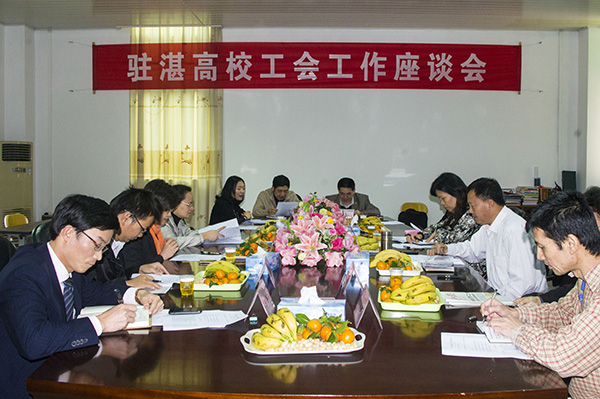 湛师新闻网12月28日讯 昨日下午,2012年驻湛高校工会工作座谈会在我校工会会议室举行。我校党委副书记、工会主席刘海涛,湛江市总工会党组成员、副主席董辉,驻湛省属高校工会常务副主席和女教职委主任等工会干部出席了会议。会议由湛江市教育工会主席、市总工会产业工会工作部部长陈绿园主持。