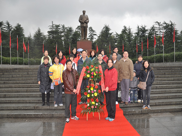 期间,考察团一行还到韶山开展革命传统教育,参观了毛泽东同志故居,并向毛主席雕像敬献了花篮。