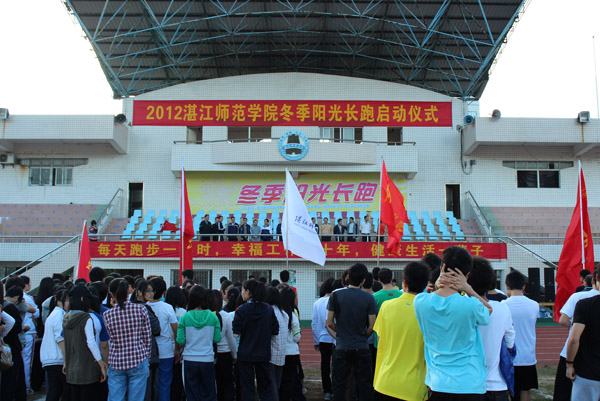湛师新闻网12月22日讯 为响应“第六届全国亿万学生阳光体育冬季长跑运动”号召,贯彻“健康第一”理念,昨日下午,我校“2012年冬季长跑活动启动仪式”在雷阳区田径场隆重举行。我校刘周堂副院长、各二级学院党委副书记、校团委老师及各二级学院的长跑爱好者参加了本次活动。启动仪式由校团委郭和才书记主持。