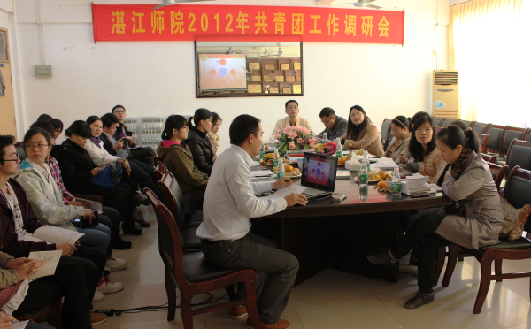 湛师新闻网12月21日讯 为全面贯彻落实党的十八大精神,推动我校团学工作的科学化发展,20日,校团委开展2012年共青团工作专题调研会,校团委全体老师,各二级学院团委书记(负责人)和部分学生干部代表参加了本次会议,会议取得圆满成功。