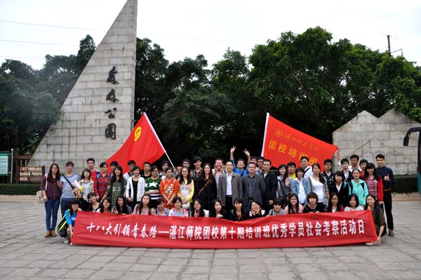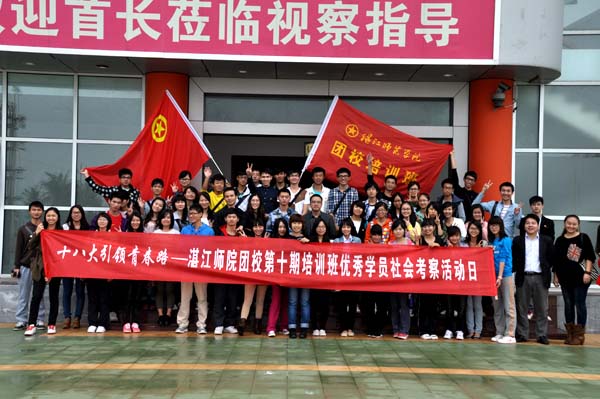 湛师新闻网12月17日讯 为响应十八大的号召,提高团校学员的综合素质能力,培养优秀学生干部。12月15日,我校第十期团校培训班四十多名优秀学员在校团委郭和才书记等团委领导老师的带领下进行了为期一天的社会考察活动。