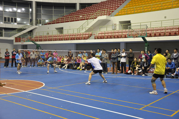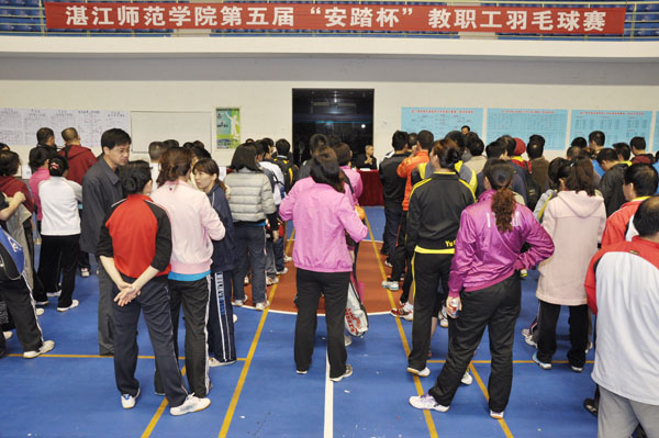 湛师新闻网12月13日讯 昨晚,我校历时五天的第五届教职工“安踏杯”羽毛球团体赛,经过紧张激烈的角逐,终于画上了圆满的句号,并于雷阳区体育馆举行了闭幕颁奖仪式。校党委副书记、工会主席刘海涛,副院长刘周堂、体科院院长章晓霜、校工会领导、运动员和裁判工作人员出席了此次比赛的闭幕式。闭幕式由校工会常务副主席何征强主持。