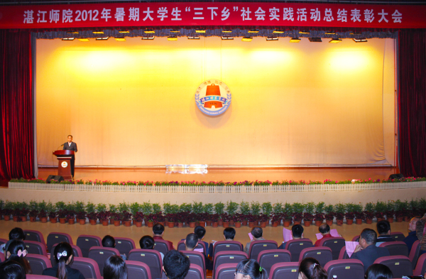 湛师新闻网12月12日讯 为总结我校学生暑期社会实践活动经验,表彰先进,树立典型,进一步巩固实践育人成效,12月10日晚,我校在音乐厅举行2012年暑期大学生“三下乡”社会实践活动总结表彰大会。
