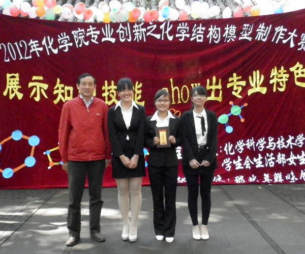 每组作品展示后,评委老师负责点评其优、缺点,并提出了制模过程中应注意的问题,包括模型的空间构型,模型分子的键长和键角的大小等。评委老师还对参赛选手提出了建议,加深了选手们对其化学模型的了解。另外,在比赛的休息时间,化学院话剧队的队员们给观众带来了精彩的节目,现场气氛异常活跃。