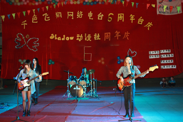 湛师新闻网12月9日讯 昨晚,人文学院千色飞翔网络电台在体育馆前举办六周年台庆活动。人文学院院长刘惠卿,新闻系主任姚远,千色飞翔网络电台指导老师赵敏,以及辅导员陈雍老师出席了本次晚会。另外,此次活动还邀请了湛江电台知名主持人黄镛泽先生等人参与其中,整场晚会气氛高涨,热闹非凡。