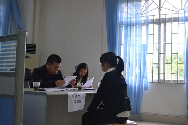 下午2点半,11个招聘学校分别在招生与就业处多功能室和弘雷楼的课室进行面试,对报名者进行进一步的筛选。据悉,本次招聘采取面试的方式进行考试,分初试、复试两个步骤进行。在我校进行的面试为初试;然后根据初试成绩从高分到低分,按各学校各招聘岗位名额1:3的比例确定复试对象。