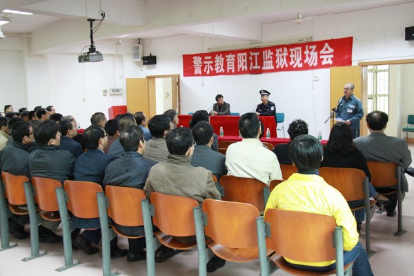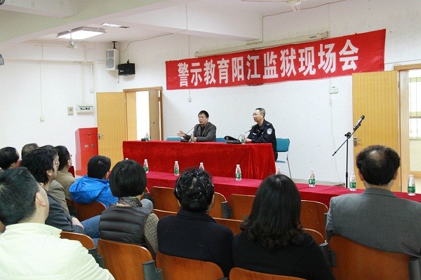 来到阳江监狱,首入眼帘的是冷冰的铁窗与高墙,大家顿时感受到了法律的无情与威严,明白了自由的可贵。在监狱领导的陪同下,大家来到监狱教学楼三楼会议室参加反腐倡廉警示教育现场会。阳江监狱改造科熊科长首先介绍了监狱的基本情况,指出了职务犯罪的三个特点,即放纵欲望、对法律的蔑视和心存侥幸,并结合工作实际提出了需要注意的问题。接着,一名服刑人员以自己的犯罪事实现身说法,讲述了自己的犯罪经过,深刻剖析了自己走向犯罪道路的根源和心理历程。他曾身居要职,有幸福的家庭、美满的生活和辉煌的事业,但因一个贪字,走向了犯罪深渊,使他失去了人身自由,毁了自己前程,祸害了国家和社会,也给家人亲友带来了极大的伤害。他痛心疾首的忏悔给与会者以深刻警示。