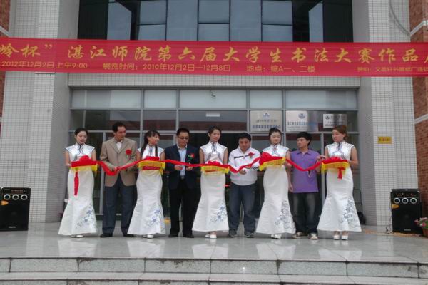 湛师新闻网12月4日讯 12月2日,我校书法协会在综合楼A栋门前举行“燕岭杯”第六届大学生书法展开幕式。我校团委郭和才书记,校党委宣传部副部长、新闻中心副主任关天冲老师,美术学院书法系主任李吾铭老师,我校及各兄弟院校的书法爱好者出席现场。