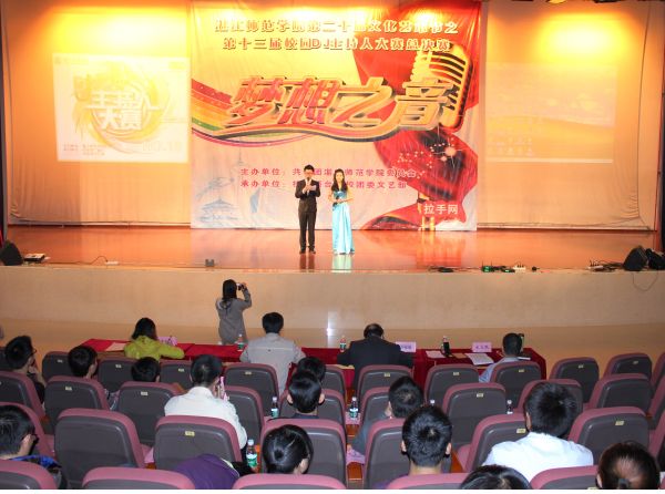湛师新闻网12月3日讯 DJ风采招展雷阳,梦想之音响彻天际。11月29日晚,由校团委主办,广播台和文艺部联合协办的湛江师范学院第二十届文化艺术节之第十三届校园DJ主持人大赛总决赛在音乐厅隆重举行。大赛上选手们用激昂的语调、灵敏的反应、精彩的表演展示了他们独特的风采。