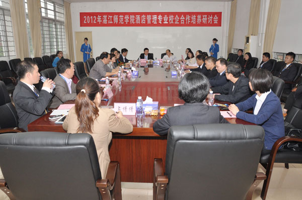 湛师新闻网12月2日讯 昨日下午,我校在紫荆楼三号会议室举行以“协同创新,校企共赢”为主题的酒店管理专业校企合作人才培养研讨会。学校党委常委、教务处处长程可拉,招生与就业处处长钟炳辉,学生处副处长谢巧云,商学院党委李干书记、王亚新院长、梁晋副书记、工商管理系宋长琨主任以及酒店管理专业任教老师们和来自广东、海南各地的十多家五星级酒店的老总、经理们参加了本次研讨会。本次研讨会由商学院王亚新院长主持。