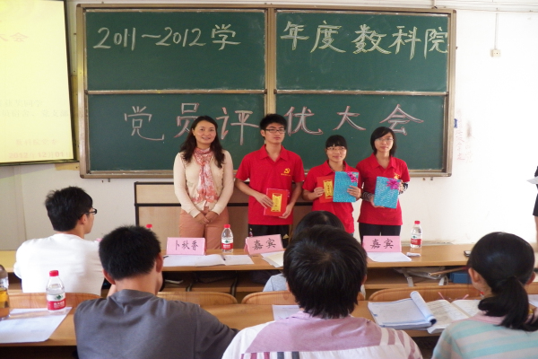 湛师新闻网12月2日讯 昨日上午,数科院在榕燕楼401室举行2011—2012年学年度党员评优大会。湛师数科院辅导员卜秋香老师,体科院、化学院党建干部代表以及数科院全体党员、各年级团支书出席了本次大会。