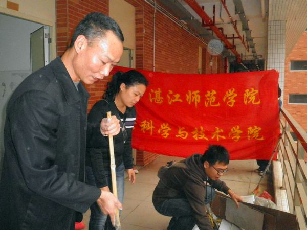 湛师新闻网11月29日讯 昨日下午,学校资产管理处与化学学院师生开展以“齐动手、共建设、促发展”共建活动,齐齐动手清洁新综合实验楼,以实际行动贯彻落实“十八大”精神,为学校建设良好的实验教学环境作贡献。资产管理处李炳富副处长、化学学院付继发书记、李梓副书记和朱国贤副院长以及两个单位的老师和学生共200多人参与了活动。
