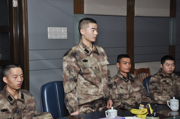 来自体科院的张源海、李文权,生科院聂红涛、祝光永,音乐学院曾德嘉及法政学院段会生这六位进疆参军的学生分别介绍各自的基本状况,并表达了从军报国的理想,望借此机会不断完善和充实自我。