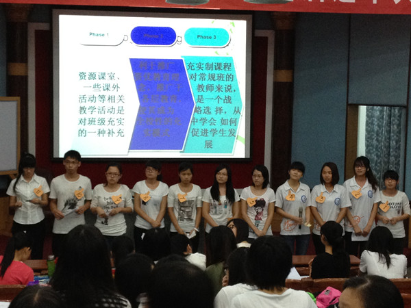 11月22日晚,一个普通的不能再普通的日子,在榕楼一楼培训教室里,却正在悄悄的上演与往常不同的一幕。卓越教师实验班、教科院的特殊教育专业以及其他专业部分学生,早早的来到了教室忙碌着,即将开始的,是一场别开生面的辩论课。辩论课的主角,是每一位选修《资优教育》课程的学生们,而课程设计的主人,正是来自台湾的资优教育专家——蔡典谟教授。