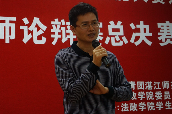 比赛结束后,麻章区司法局吴文斌律师和湛江市人民检察院李聪副科长对本次比赛进行点评。吴律师指出各位辩手的辩论语速、案件分析、法理把握均不错,能明确抓住案件的本质问题。但是,对于阐述观点、论据时,逻辑不够清晰。同时,李副科长也提醒了辩手们要注意辩论礼仪,他指出,智慧的比拼必须通过一定的规范来体现。此外,法学会指导老师林碧华对本次论辩赛进行总结,她指出一点注意事项,就是要谨记控方是负责举证,不要把公诉人与律师论辩赛当成是普通的辩论赛。