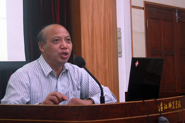湛师新闻网11月24日讯 昨天下午,暨南大学党委书记蒋述卓教授受邀在我校图书馆学术报告厅作题为“古典诗词的生命精神与哲学智慧”的学术报告。人文学院刘惠卿院长、唐雪莹副院长,办公室吴义庄主任以及部分相关学科老师出席了本次报告会。报告会由刘惠卿院长主持。