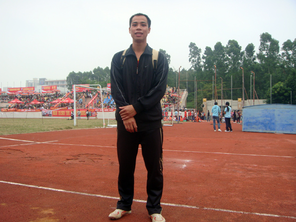 这,便是来自11体教班的朱亮。49.54米的好成绩使他异军突起,问鼎冠军!