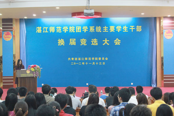 湛师新闻网11月16日讯 为深化我校学生干部选拔和管理机制改革,加强我校学生干部队伍建设,11月13日晚,我校团学系统主要干部换届竞选大会在弘雷楼311室举行。团委全体老师、二级学院部分团委负责人、四大学生机构全体学生干部以及各二级学院的部分学生干部代表参加了竞选大会,大会由团委组织部莫琼玉部长主持。现场座无虚席,气氛热烈,洋溢出浓浓的青春气息,展现出我校学生干部们积极向上的精神风貌。