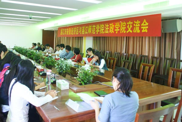 湛师新闻网11月8日讯 4日,法政学院在湛江市奋勇经济区会议室与该区举行“地方经济发展与人才培养”交流会暨“湛江师范学院法政学院学生干部素质教育基地”揭牌仪式,经济区副主任邓世亮及相关部门领导、法政学院副院长王栋、党委副书记全柱、该院辅导员以及各学生机构主要干部出席了此次交流会。会议由王栋副院长主持。