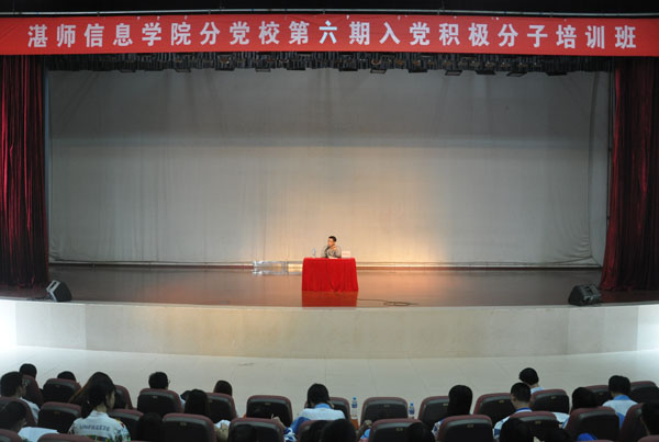 湛师新闻网11月5日讯 昨日,信息学院分党校在音乐厅开展第六期入党积极分子培训班第二阶段授课。信息学院党委林荣新副书记、美术学院党委冯基聪书记、物理学院党委吴万副书记和信息学院辅导员谢统年老师出席了此次培训活动。