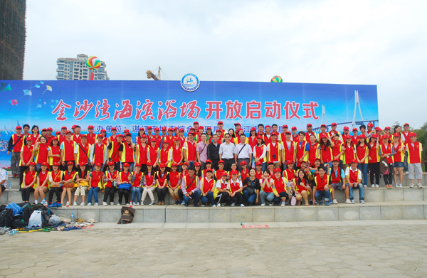 湛师新闻网10月29日讯 沐浴海滨阳光海风,志愿服务热情高涨。27日上午,金沙湾海滨浴场开放启动仪式在湛江赤坎区金沙湾隆重举行。我校156名青年志愿者在校团委郭和才书记和莫然老师的带领下,舍弃周末休息的时间,分布在启动仪式现场的各个站点全力投入各项志愿者工作,展现了青年志愿者志愿服务,乐于奉献的精神风貌。