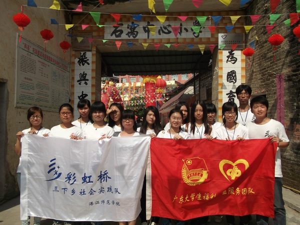 据悉,人文学院“彩虹桥”实践队于2011年暑假前往广西北流市“关爱农名工子女基地”石窝中心小学开展三下乡活动,因其活动丰富、新颖,为当地注入一股新的活力,活动受到当地领导、村民、学生的一致好评,“彩虹桥”社会实践队因此获得广东省福彩公益奖。虽然2011年的三下乡已经结束了,但“彩虹桥”实践队并没有摒弃“福彩公益奖”服务社会、回馈社会的宗旨,回访时将队伍所获得的5500元福彩公益奖金用于购买课外书籍捐赠给该学校。
