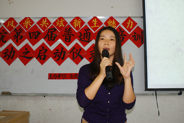 王焜副院长指出,普通话作为一种重要的交流方式,学好它,能更好地展现一个人的文化水平和素养,方便与人沟通;尤其作为师范生,普通话是一项必不可少的教学技能。她希望每位同学都要认真对待此次普通话培训,做到持之以恒,严于律己,努力提高自身普通话水平。管理系王锐老师通过两个生动的例子向同学们展现了说好普通话的重要性,并简述了普通话测试的注意事项。建议同学们要在练普通话的时候做到“三多”,多听、多练、多说。