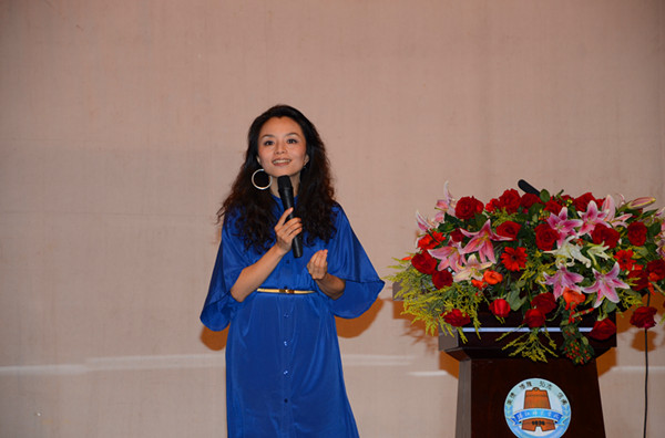 湛师新闻网10月18日讯 昨晚,外语院在音乐厅举行了主题为“英语学习与人生奋斗”的讲座。外语院2000届校友、新东方优秀教师罗蓓老师担任主讲人。外语院院长曹志希教授,党委孙卫东书记,冯彩莲副书记,英语系部分教师和辅导员陈理才老师、杨进军老师、罗成燕老师也来到讲座现场。