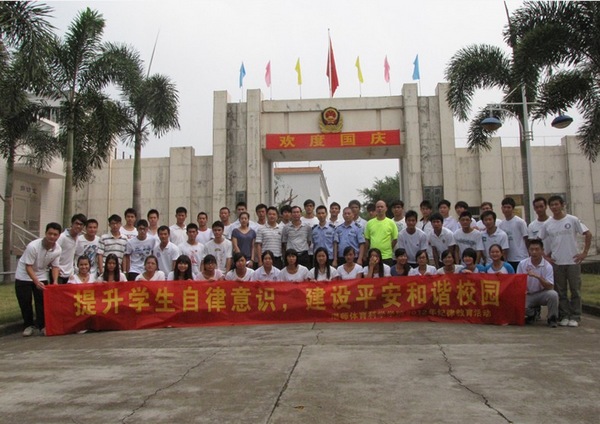 湛师新闻网10月17日讯 为进一步贯彻落实《湛江师范学院2012年纪律教育学习月活动实施意见》的通知精神,深入推进我院学生党员廉洁修身教育,培养青年大学生的廉洁自律意识,近日,体科院党委组织学生党员干部到湛江市劳动教养管理所开展“提升学生自律意识,建设平安和谐校园”纪律教育学习活动。体科院党委曹巧书记、郑晓辉副书记、全体辅导员老师以及学生党员干部代表参加本次活动。