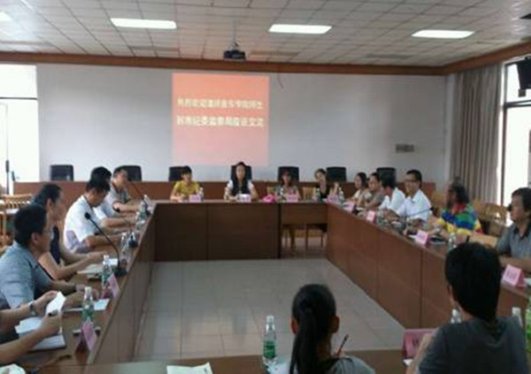 随后,市纪委监察局领导与音乐学院师生进行了座谈交流。音乐学院刘福瑞书记介绍参观人员和音乐学院的基本情况,并简述了此行的目地、意义和表达了对市纪委监察局领导的衷心感谢。市纪委监察局陈恩才副书记受市纪委张小刚书记的委托介绍了本单位的基本情况和近年来市纪委、监察的各项工作及其取得的成果。在互动环节,双方对惩处和预防腐败以及青年学生廉洁教育进行了交流和探讨。市纪委监察局领导对该院的纪律教育月活动提出了一些很好的建议。最后,该院领导和该局领导商定,在合适的时间前来学校讲学和指导工作。