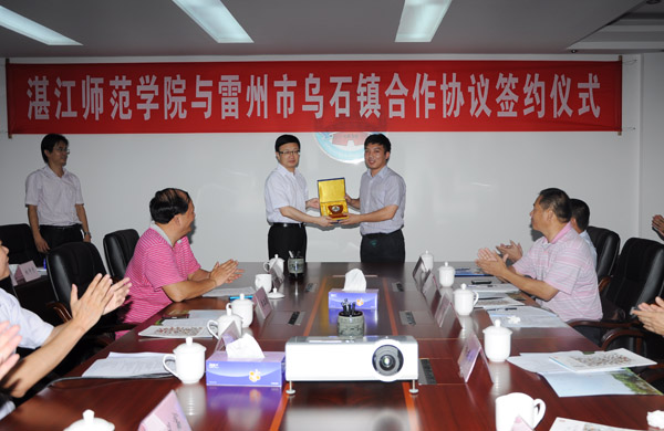 签约仪式上,李江凌副院长、金义富处长、程可拉处长分别代表学校与乌石镇谭超镇长、吴启富校长等代表签订了《乌石镇人民政府与湛江师范学院合作框架协议书》、《乌石镇镇海社区、镇西渔业村委会与湛江师范学院合作框架协议书》、《乌石中学与湛江师范学院合作框架协议书》。