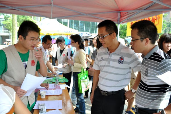 经过前期开展一系列的宣传动员活动,本次公开招聘校级学生干部咨询会取得良好的效果,四千多张的报名表早已被“抢空”,需要重新发放报名表。四个机构的学生干部鼓励新生积极参加应聘,并热情耐心地为新生讲解本部门的工作性质、要求,并希望聘用到高质量的学生干部,进一步充实校级学生干部的队伍,更好地为广大师生服务。