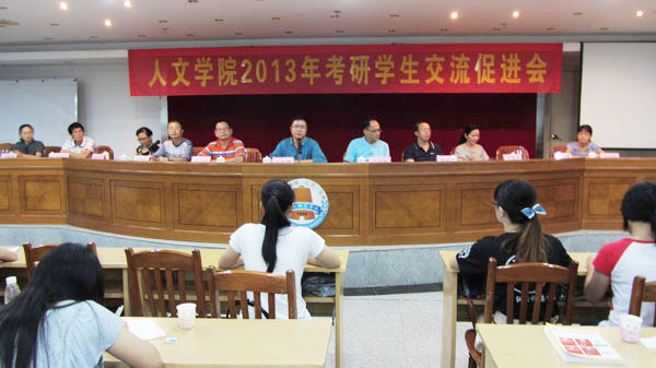 湛师新闻网9月14日讯 昨晚,人文学院2013年考研学生交流促进会在校学术交流中心三楼会议室举行。人文学院谢应明书记,刘惠卿院长,李新灿、唐雪莹、马显彬副院长,阎开振教授,郑继娥、王国珍、蓝国桥副教授,全群艳、谢明亮老师以及人文学院2013年考研学生112人出席了本次会议。会议由李新灿副院长主持。