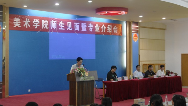 美术学院在弘雷楼311教室举行2012级师生见面暨专业介绍会。美术学院党委书记冯基聪、院长巨云和、党委副书记林志军、副院长刘宝光、副院长乔志强、办公室主任黄锦敏等领导老师以及该院2012级新生班主任、班主任助理及全体新生参加了会议。冯书记认为从中学到大学是人生的一个重要转折,身份和责任都不同了,因此思维方式与行为准则也须有所改变。对此,冯书记提出三点建议和同学们共勉:第一、志存高远,树立理想;第二、胸怀广阔,宽容合作;第三、调整心态,尽快实现角色的转换,希望同学们用辛勤的汗水收获真知、真情。巨云和院长也向新来的大一同学寄以几点希望:首先,美术学院的学生外省人数居多,不同地域有不同的文化,希望同学们能相互融合,相互渗透,从而感受到大家庭的温暖。同时,希望同学们尽快地适应大学生活和学习,锻炼自我调解能力、生活的独立自理能力和发现问题的解决能力,抓住机遇和挑战,实现理想。另外,预祝同学们团结友爱,身体健康,万事如意。刘宝光副院长则就美术学院的概况、教学条件、教师队伍与各个专业分别做了详细地介绍。