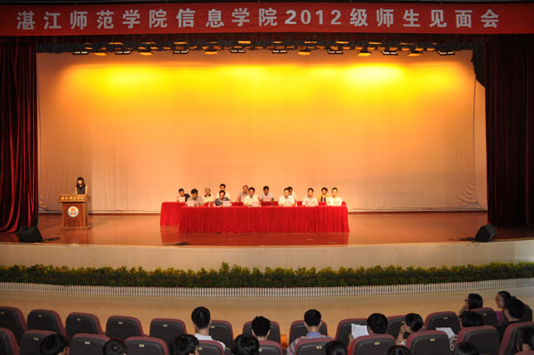 人文学院见面会伊始,刘惠卿院长致辞。他首先对新生的到来表示祝贺与欢迎,接着,他对人文学院的发展历史以及办学现状等方面向新生作了简单的介绍。为了使新生更好地融入大学生活,“早定目标,早努力,早成才”,刘院长给出了自己的建议:一,要学会学习。他通过比较高中学习与大学学习的三方面不同来教导同学们要注重学习方法的掌握,知识会随着不断的更新而被忘记,方法却会受用一生。他希望同学们在学习中注意把握本质,领悟方法。二,要学会做事。从小事做起,并将它看作事业,做好,做大,平凡的小事就会变得不简单。三,要学会为人。要在挫折中守护理想,守住底线,把握好作为一名大学生的标准,学会一些任何人都无法传授只能靠自己摸索的“分寸”。最后,他告诫同学们,你的一言一行都将积累在现代生活的资本和信用,希望每一位人文学子都能够成为一名志存高远,开拓进取的优秀大学生。信息学院咏雷楼音乐厅举行2012级师生见面会。出席本次见面会的有党委林汉书记、许棠院长、邓明副院长、陈小亘副院长、杨俊杰副院长、党委林荣新副书记等领导和老师。此次见面会由林荣新副书记做主持。