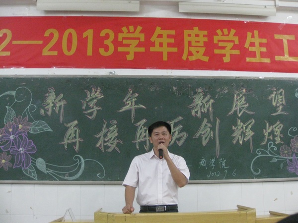 湛师新闻网9月7日讯 昨晚,商学院于燕雷楼105室举行“新学年、新展望,再接再厉创辉煌”为主题的2012——2013学年度学生工作会议。商学院党委李干书记、梁晋副书记、全体辅导员及主要学生干部出席本次会议。