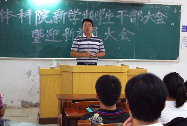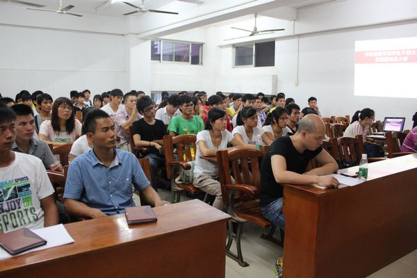 湛师新闻网9月6日讯 今天下午,体科院在弘雷楼304室召开2012-2013学年度第一学期学生干部会议。体科院党委郑晓辉副书记,学工办钟召春、刘天明、陈静等三位老师,四大学生机构全体学生干部以及2012级助理班主任出席了大会,会议由辅导员钟召春老师主持。