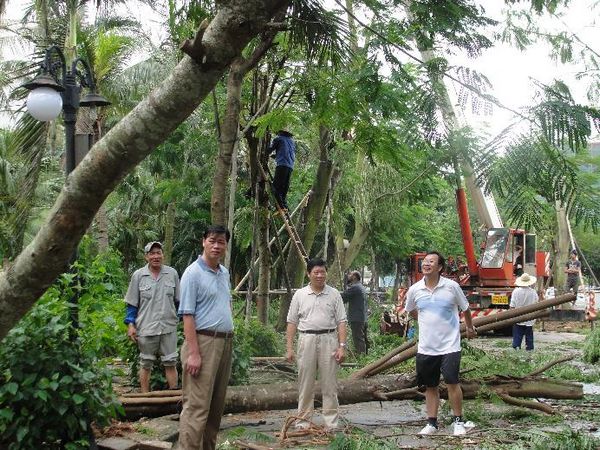 17号下午14:30,后勤产业处抓紧时间组织人员冒着狂风暴雨,开始清理倒伏在校道上的树木,以及散落的树枝和杂物,保持主要干道畅通。由于处置及时、得当,校园水电运行、使用正常。经过18日的全面运作,校园环境初显往日整洁。这次抗灾恢复工作,后勤产业处反应迅速、高效,并采取校内外力量联动方式,调集了约100余名工作人员,以及大型吊机、运输车、清洁车等全力投入灾后恢复工作,取得了较好效果。
