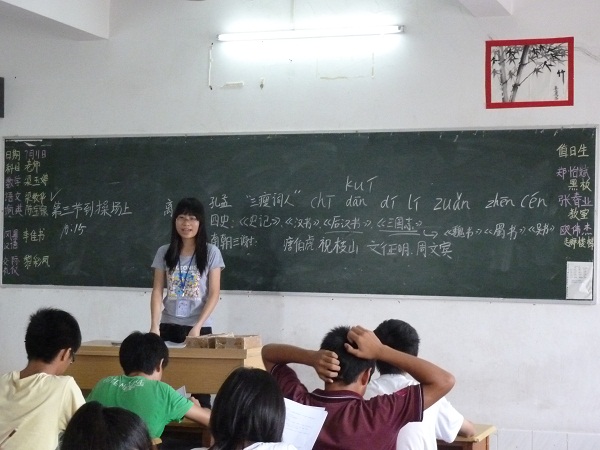 筹备期。我们的队伍,有着长长的而又好听的名字——“灿烂夏花”三下乡社会实践服务队,实践日期是七月九号到十七号,基地定于吴川二中。出发前我们要完成很多筹备活动,队员招募、队员见面会、工作讨论会,等等。支教组的还有试讲。与专业挂钩,我在支教语文组,给学生们上第一课堂,教文学常识,一天只有一节课。写好教案,准备好授课资料,待一切准备就绪,我已经对即将到来的三下乡生活满是憧憬。期待九号的到来,更期待第一次支教生涯的到来。