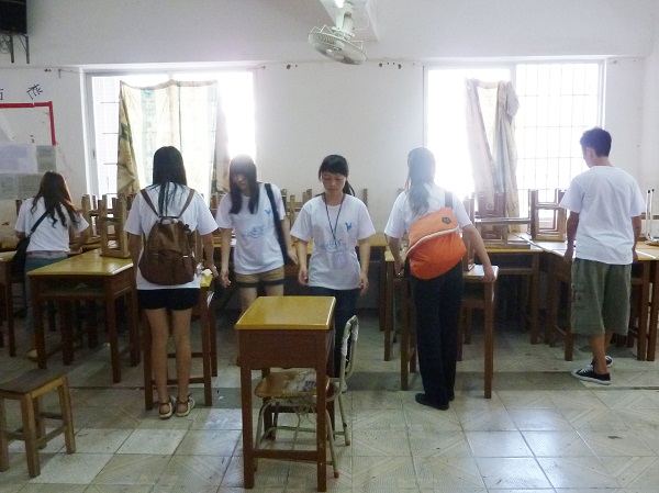 在太阳的热情迎接下,我们下车了,来到了一个充满古朴民间气息地方,而吴川二中就在其中。但我们来不及欣赏风景了,因为还有很多工作在等着我们呢,有种刻不容缓的感觉。搞清洁、迎新生、开会等等一系列的事情,让我们奔波于骄阳与汗水之中,但我们不埋怨,我们努力,我们自豪、我们满足、我们心安。