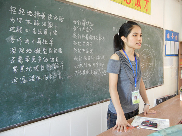 看来这一次我真的撞到大石头了。第二天是开班仪式,我真的很担心管不了他们而让我们服务队在领导面前出丑,不过还好,虽然他们还是那么调皮,不过没出什么大问题,这让我松了一口气。为了管好这个班我一有空就去看一下他们,跟他们接触了解他们的想法,我也很努力把班上每个人的名字记住,课后我就会跟他们聊天,了解以前他们老师是怎样管教他们的,平时他们是怎样学习的,还有平时有什么兴趣爱好等等,我看到他们打乒乓球,我也加进去,他们去抓虫吓我,而我拿虫去玩。慢慢地,我发现在我叫他们安静的时候有很多学生自觉的帮我叫旁边的人不要吵,我走的时候学生会跟我打招呼,会帮我收拾东西,这对于男孩子来说实在是难能可贵。