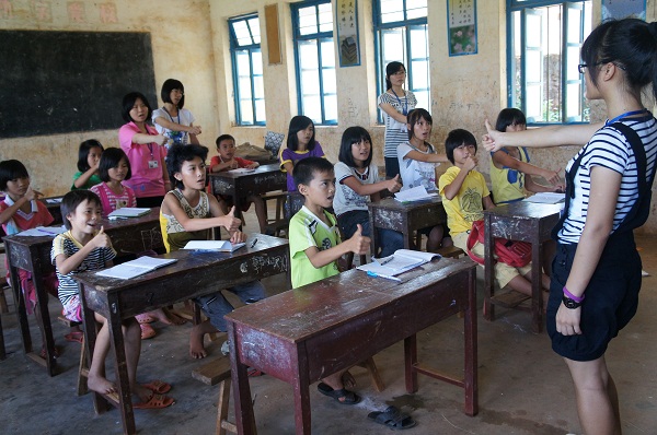 这里的孩子从小开始到小学毕业压根就没走出过这条村子,我们所讲的很多东西对于他们来说都是新鲜的,他们对此充满了好奇心,我从他们的眼睛里看到了渴望,渴望知道更多村外的事情,渴望学到更多的东西,接触到更多的人,渴望有朝一日走出新家村,造福新家村。一双双盯着黑板的眼睛,一只只争先恐后举起的小手,一阵阵渴望被教导回答问题的声音,他们那种“答对答错没关系,先动脑筋积极回答问题是关键”的精神,让课堂气氛变得很活跃,也让我们这些小老师倍感欣慰。他们很聪明,一节课教给他们的东西,下课之后就可以学以致用。记得有一天手工课下了之后,我带着相机到四年级的班上去拍照,发现讲台上有一束用塑料瓶装起来的纸百合,五颜六色的,煞是好看。忍不住就拍了下来。我仔细一看又会发现纸花上写着“老师,您辛苦了”,这群孩子接受的教育并不多,但是感恩的心意绝不比城市的孩子少,而这份心意是让我们都真真切切感受到的。