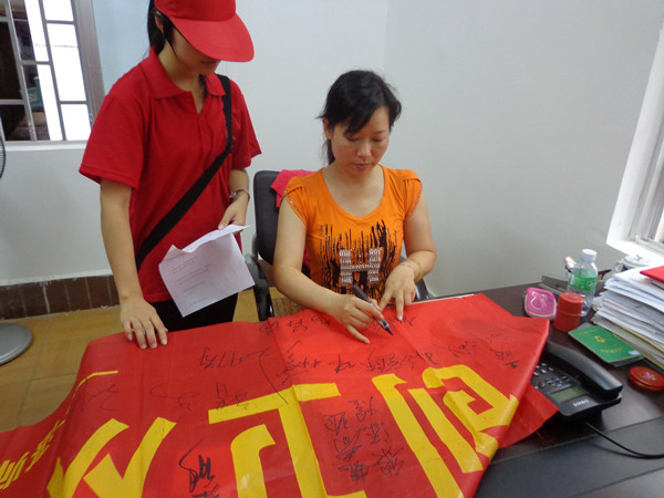 中山街道办的干部在横幅签名
